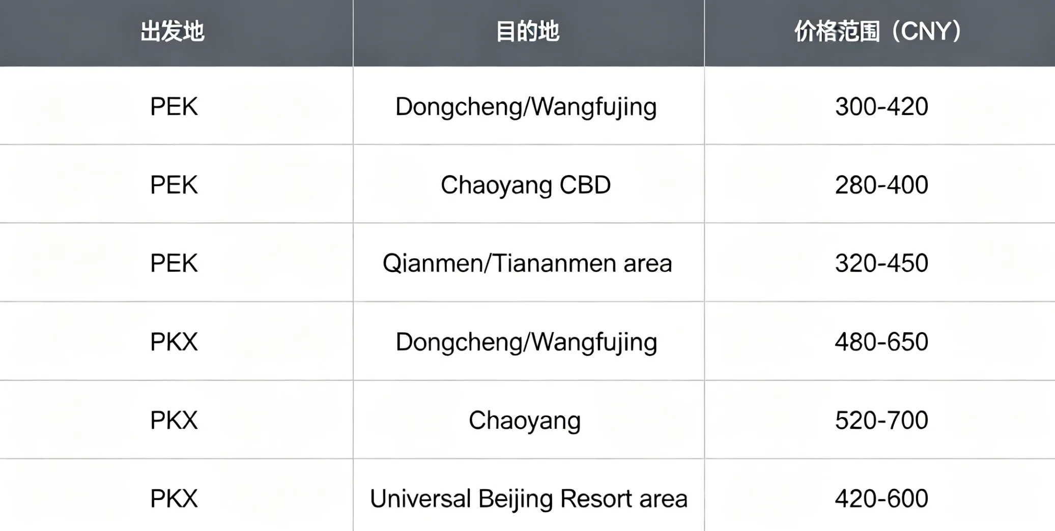 Typical cost from PEK: about CNY 120-200 to many central areas
